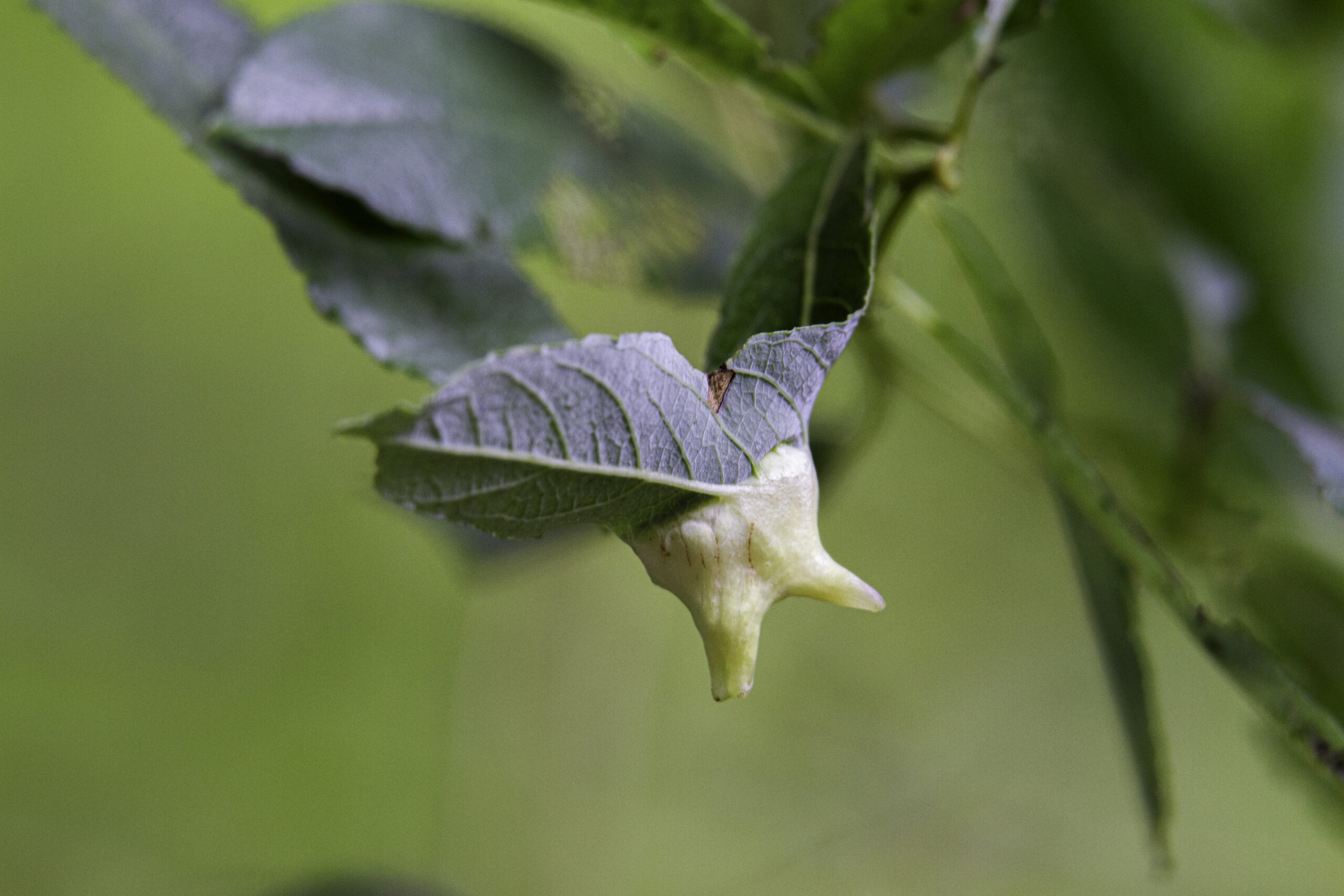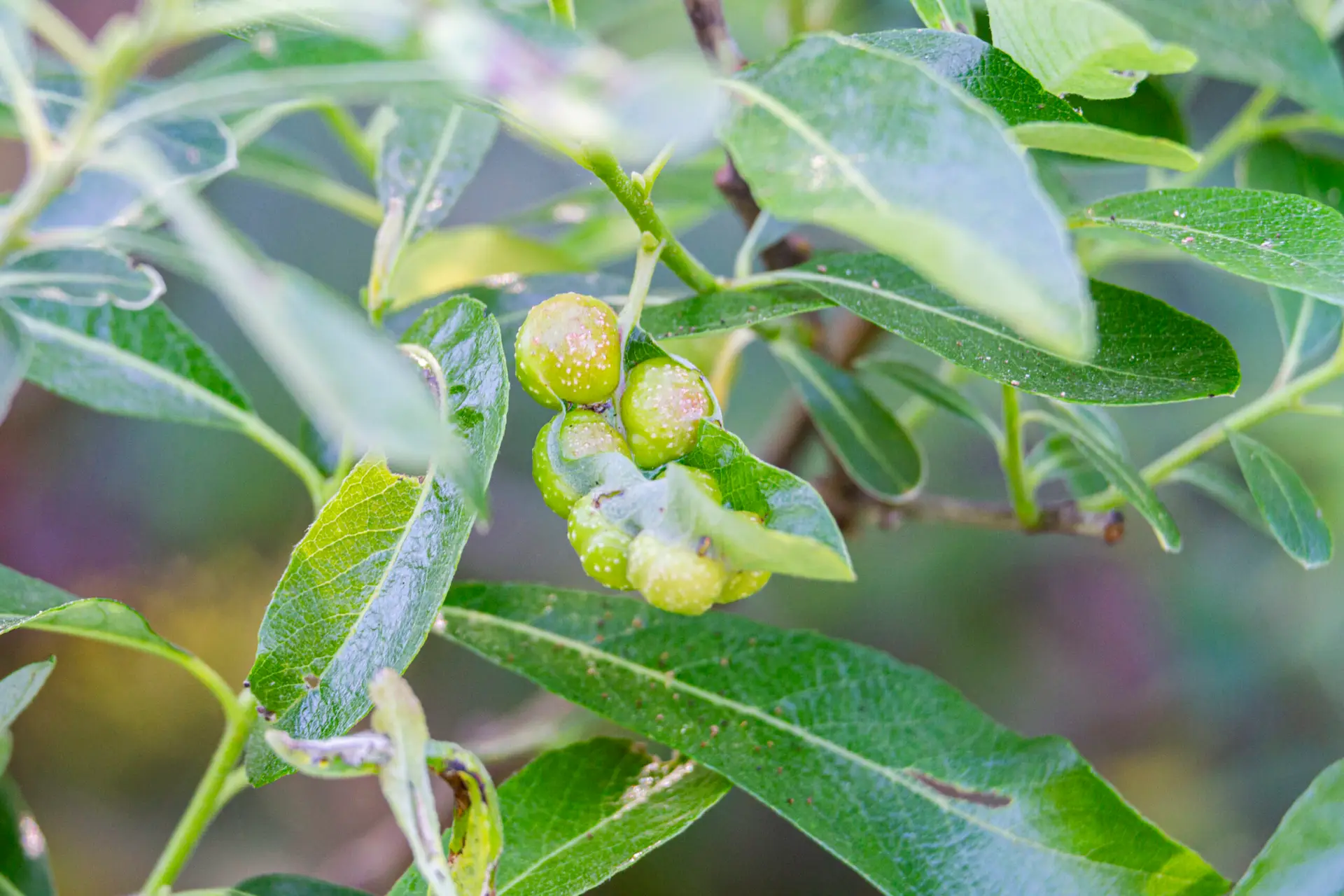 Narrow, green leaves are alternate, wider near the tip than the base and pale underneath.
