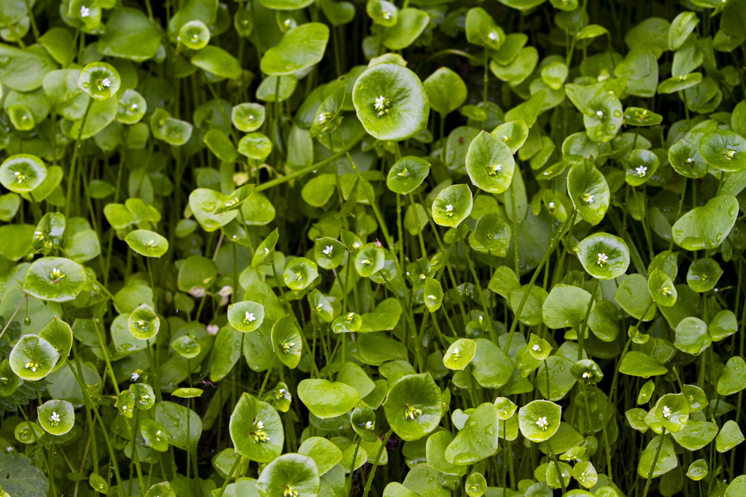 Leaves at the base are long and thin, with a diamond shape at the tip. Multiple stems emerge from a single base. Pairs of upper leaves join together to become rounded, with the leaf blade surrounding the stem, such that the stem appears to pass through the leaf (perfoliate). As leaves dry out, they turn red.