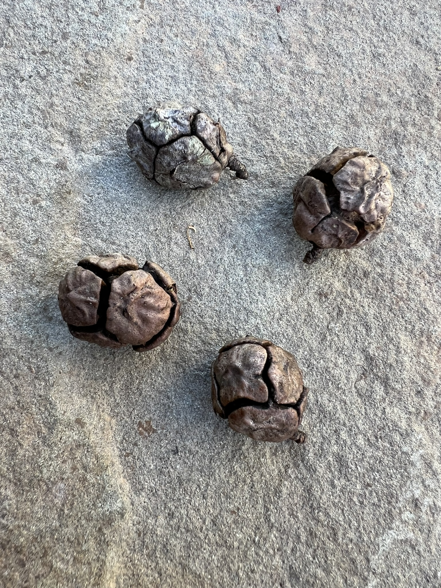 Cones in clusters on branches, sometimes solitary. Seeds enclosed in cone until opened by heat or fire. Cones are one inch in size.