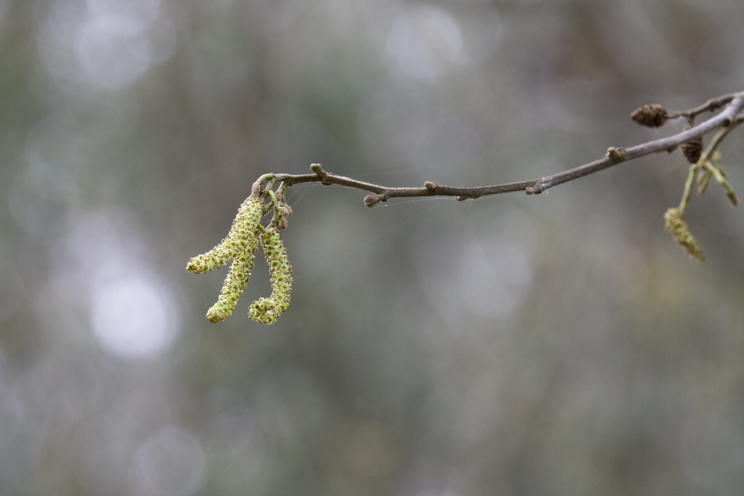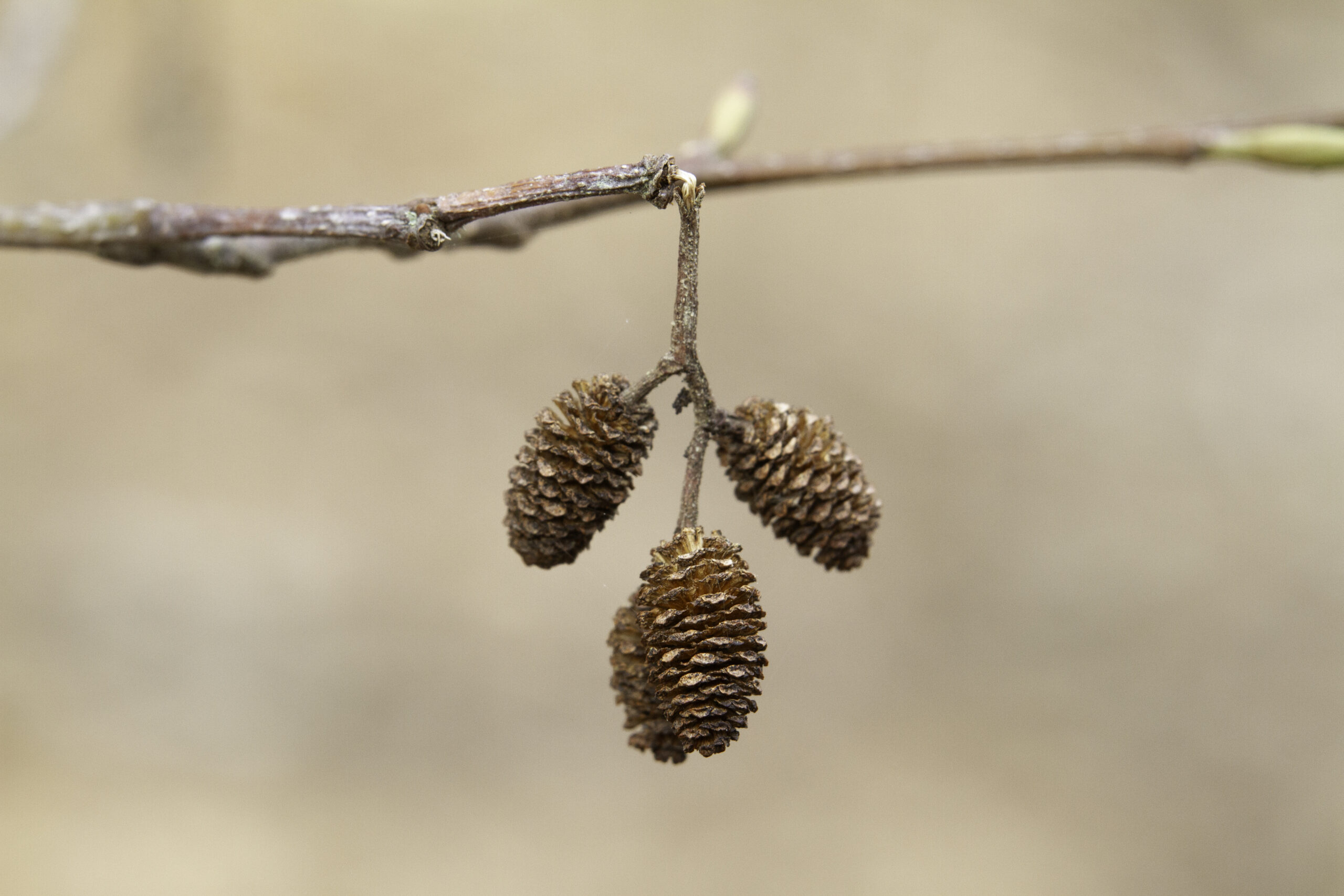 Tiny seeds form in female cone-like structures. In the fall seeds are dispersed by the wind. Long male catkins release pollen in winter and spring.